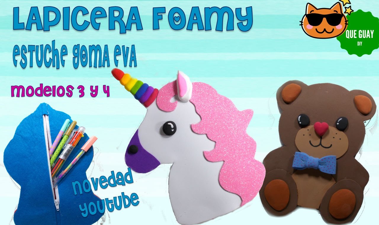♥ Estuches / lapiceras de goma eva / foamy ♥ Modelos unicornio y osito de peluche♥ Los saludos están en el video 1 ♥ Ver el video número 1, para los modelos oso panda y maquina de chicles . Hola artistas, bienvenidos a un nuevo tutorial de Que Guay Manu